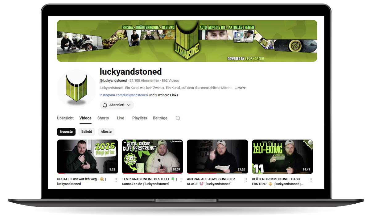 Lucky & Stoned je dokonalou kombinací zábavy, znalostí a humoru o konopí. Kanál pokrývá vše od kmenů a pěstování až po témata životního stylu. Uvolněná atmosféra a cenné informace pro všechny, kteří se vášnivě zajímají o zelenou rostlinu. Zpět na seznam zde: Nejlepší youtubeři o trávě v Německu.